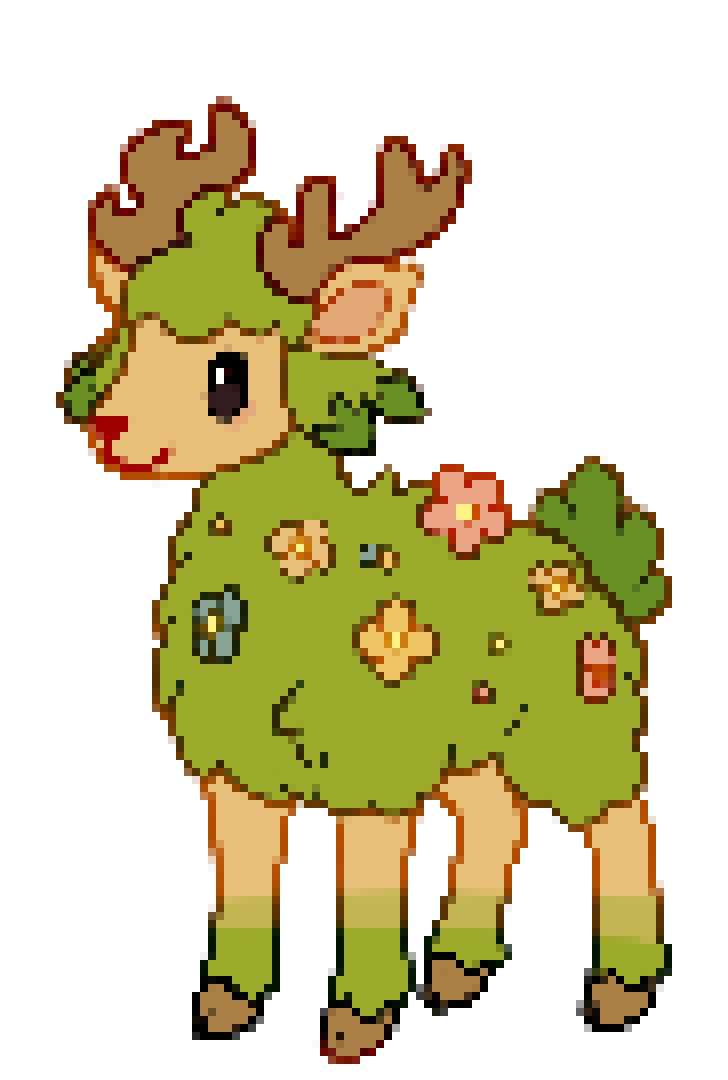 A graceful mix of deer and sheep, Mossmelle blooms with wildflowers and moss along its wool.
