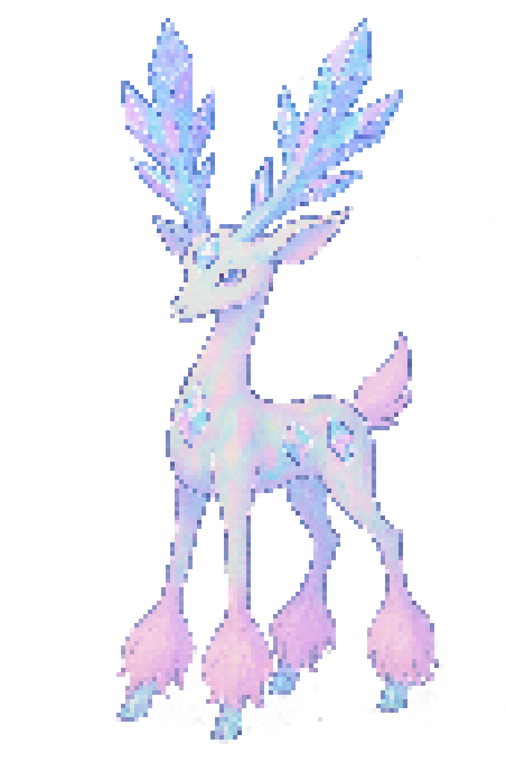 Geodralis is a majestic, mythical Pokémon crowned with massive gemstone antlers that radiate cosmic energy.