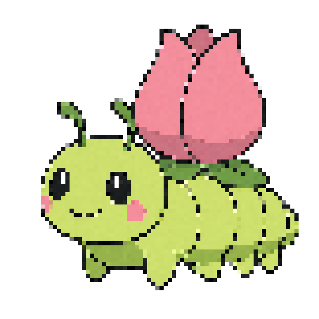 Budmite is a tiny caterpillar-like Pokémon with a flower bulb on its back.