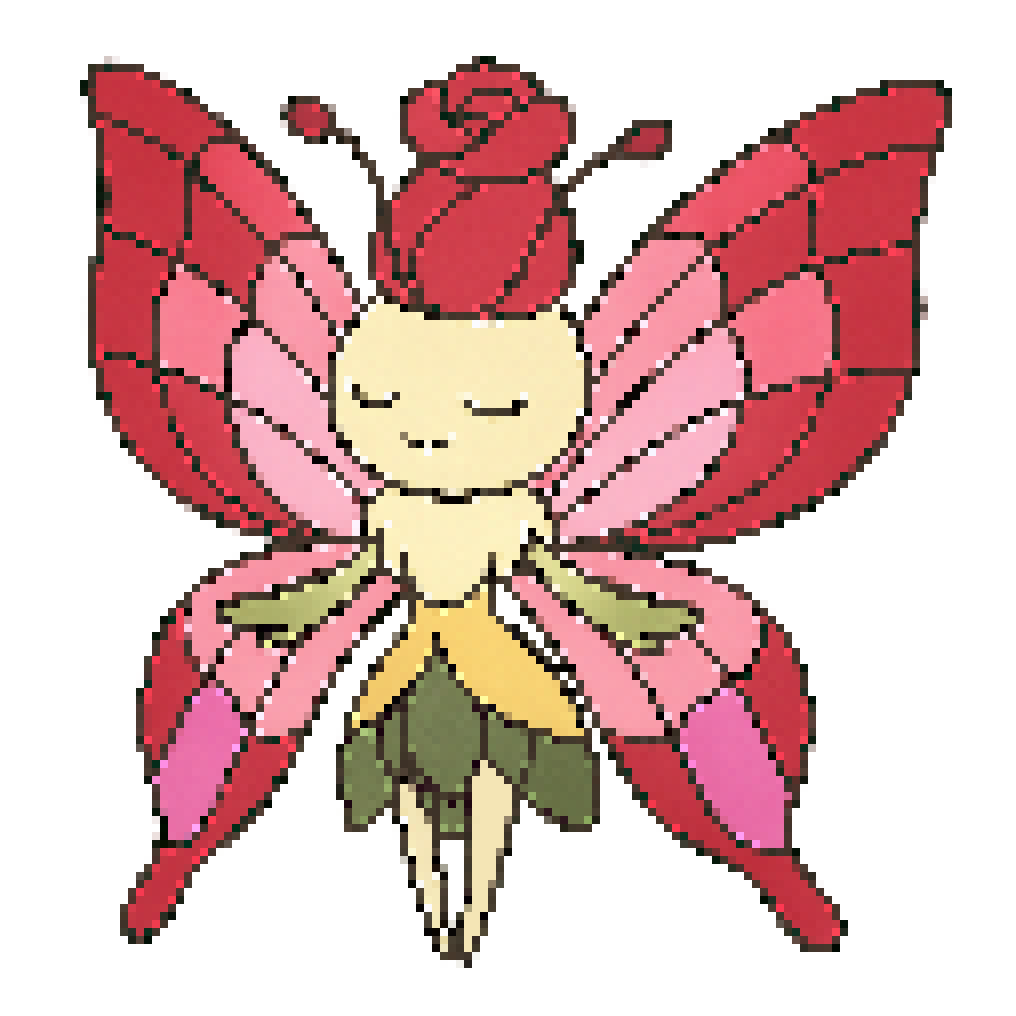 Flufflora evolves with light wings resembling delicate flower petals, which flutter almost silently.