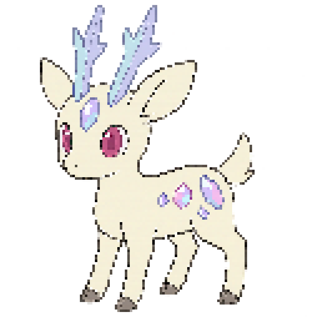 Fawnglow is a shy, rock-coated fawn Pokémon that hides among moonlit caverns and crystal groves.